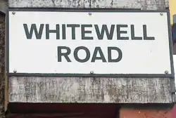 The Whitewell Road is an interface area in north Belfast and Newtownabbey, Northern Ireland, and historically the site of occasional clashes between nationalists and loyalists. The Whitewell Road and the surrounding area is a residential community in the Greencastle parish. The Whitewell area is considered a working class area. For much of its length the Whitewell Road runs parallel to the M2 and also provides a direct link between the A2 (Shore Road) and the A6 (Antrim Road).