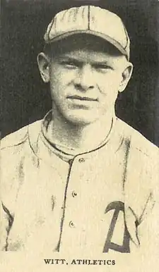 Witt was well known for having been knocked unconscious by a thrown soda bottle at a game in Sportsman's Park in St. Louis in 1922. The Yankees were locked in a tight pennant race with the St. Louis Browns that year. The person who threw the bottle from the stands was never identified, though the Yankees and Witt came back to win the series (thanks to a key hit by Witt) defeating the Browns by one game for the pennant.