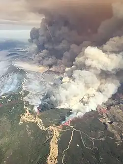 The Whittier Fire was a wildfire in the Santa Ynez Mountains, south of Lake Cachuma, along Highway 154 in Santa Barbara County, California in the United States. The fire was reported on July 8, 2017, at 1:43 pm.[2] Upon containment on July 28, the fire had burned a total of 18,430 acres (75 km2) and destroyed 16 homes.[1]