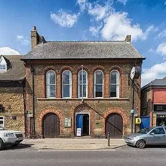 The 1849 Act also established a body of improvement commissioners to provide public services and infrastructure to the area around the town itself.[31] The commissioners' district was converted into an urban district under the Local Government Act 1894. The 1894 Act also directed that parishes could not straddle district boundaries, and so the parish was split into a Whittlesey Urban parish covering the urban district and a Whittlesey Rural parish covering the remainder.[32] The urban and rural parishes were reunited in 1926 as a single parish of Whittlesey when the urban district was enlarged to cover the whole area.[33] The urban district council met at Whittlesey Town Hall on Market Street, which also served as a magistrates' court and fire engine house.[34][35] Between 1889 and 1965, the Isle of Ely was an administrative county with its own county council, whilst also forming part of the wider geographical county of Cambridgeshire. Between 1965 and 1974, the administrative county covering Whittlesey was called Cambridgeshire and Isle of Ely.[36]