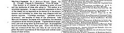 - The Vegetarian Staff (15 July 1895), "Reviews", The Vegetarian, vol. 1, no. 1