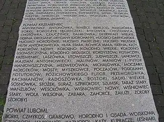 ![]() Monument in memory of the Polish victims of Volhynian massacre including Wiśniowiec Nowy and Wiśniowiec Stary, Warsaw | |