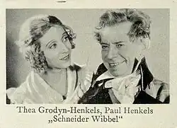 Wibbel the Tailor (German: Schneider Wibbel) is a 1931 German comedy film directed by Paul Henckels and starring Henckels, Thea Grodyn, and Wolfgang Zilzer. It is an adaptation of the 1913 play of the same title by Hans Müller-Schlösser. There are no copies of the film known.[1][2]