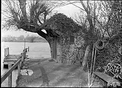 Wick today contains a number of Grade II listed buildings, among them Riverside Cottage, a high-pitched thatched cottage adjoining Wick Ferry, and Wick House, a substantial red-brick property almost opposite - probably built in the late eighteenth century for Richard Hughes, a noted informant on local smugglers and the owner of Tuckton Farm.[5][6] He put the property up for sale in 1784, when it was described as a "modern ... dwelling house in good repair",[7] but there were no takers. The property was successfully auctioned in 1792 when it was purchased by the Sloman family, who eventually over-reached themselves by purchasing several breweries in Somerset; in 1891, John Sloman the Third was adjudged bankrupt with debts of £11,487 13s. 1d.[8] By this point, Wick House had been put into trust, and thus remained occupied by the Slomans until it was sold and divided into four maisonettes in the 1950s.[9]