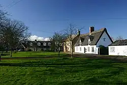 Wicken's relative isolation and poverty has meant that several of the late medieval and early modern timber-framed houses survive. The medieval limestone cross which formerly stood on Cross Green was unburied and reinstated there in 1973.[2]