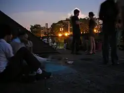 In 1989, the "Around the Coyote" festival was launched to help the hundreds of working artists and micro-galleries in the neighborhood to gain a level of local and international prominence. This 501(c)3 non-profit was established with the mission to "bring to the art community a professional organization that will help artists network and exhibit their art."[18] For decades, the festival centered on the Flatiron Arts Building and was typically held during the month of October, Chicago's Artist Month.[19] Since 2008 "Around the Coyote" moved downtown, officially marking an end of an era, in 2008 it was renamed Looptopia. The presence of local artists also declined in the area, many migrated to other art communities in Pilsen, Humboldt Park, Logan Square, Jefferson Park, Rogers Park, and Uptown.