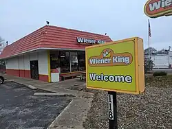 Wiener King is a hot-dog company that currently operates one restaurant located in Mansfield, Ohio. Wiener King was formerly a franchise, but has since closed all but one of their restaurants.[1] The chain was founded in 1970 by Ronald W. Howard, in Charlotte, North Carolina. Wiener King was once one of the fastest growing restaurants in the United States.[2][3] It was well known for its advertising and publicity.[4][1] In 1975, Wiener King was sued by another chain with a similar name.[5]