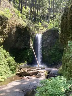 Wiesendanger Falls, also known as Double Falls and Twanklaskie Falls,[1] is a 50-foot waterfall on the Columbia River Gorge, Multnomah County, Oregon, United States.[2] Its main drop is 50 feet and is located upstream of Multnomah Falls and accessed through the Multnomah-Wahkeena Loop Hike.