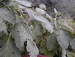 The caracus wigandia can cause severe contact dermatitis.[2] A substance that it secretes, 2,3-dimethoxy-geranyl- 1,4-benzoquinone (consisting of a quinonoid ring with a 10 or 11 carbon-membered side chain) is a remarkably strong sensitizer, which is found nowhere else in the plant kingdom. It has been described as approximating an "ideal allergen".[3]