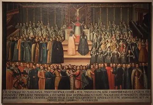 On 8 May 1606, during the wedding of the Tsar False Dmitry I with a Polish szlachta lady Marina Mniszech, Prince Trubetsky was "the first rynda in the white coat".[9]