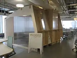 WikiHouse is an open-source project for designing and building houses.[1][2] It endeavours to democratise and simplify the construction of sustainable, resource-light dwellings.[1][2][3][4][5] The project was initiated in the summer of 2011 by Alastair Parvin and Nick Ierodiaconou of 00, a London-based strategy and design practice, in collaboration with Tav of Espians, James Arthur now with 00 and Steve Fisher of Momentum Engineering.[6][7] It was launched at the Gwangju Design Biennale in Gwangju, South Korea.[6][8][9] The project has since grown to become a worldwide community of contributors.[10]