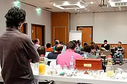Wikimedia affiliates are independent and formally recognized groups of people working together to support and contribute to the Wikimedia movement. The Wikimedia Foundation officially recognizes three types of affiliates: chapters, thematic organizations, and user groups. Affiliates organize and engage in activities to support and contribute to the Wikimedia movement, such as regional conferences, outreach, edit-a-thons, hackathons, public relations, public policy advocacy, GLAM engagement, and Wikimania.[33][34][35] While many of these things are also done by individual contributors or less formal groups, they are not referred to as affiliates.