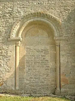 The Church of England parish church of Saint Peter was built in the latter part of the 12th century, and the blocked Norman south doorway is the most notable feature from this period.[6] Its jamb shafts have cushion capitals.[7] The earliest record of a parish priest is of one Geoffrey, who was installed between 1209 and 1219.[6]