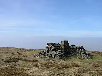 The summit has a trig point; Sand Tarn lies about 330 yards (300 m) to the west. Views include the Howgill Fells, Lake District, Pennines, Yorkshire Three Peaks, and even Morecambe Bay on clear days.