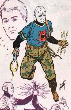 Wild Dog is a fictional superhero appearing in American comic books published by DC Comics. Wild Dog is the superhero identity of Jack Wheeler. Wild Dog wears a hockey mask and a shirt featuring a red dog and wields firearms. He first appeared in Wild Dog #1 (September 1987), and was created by Max Allan Collins and Terry Beatty.