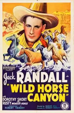Wild Horse Canyon is a 1938 American Western film directed by Robert F. Hill and written by Robert Emmett Tansey. The film stars Jack Randall, Dorothy Short, Frank Yaconelli, Warner Richmond, Walter Long and Dennis Moore. The film was released on December 21, 1938, by Monogram Pictures.[1][2][3]