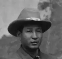 - ^ Oskate Wicasa, p.6, 54. The number of police chosen depended on the number of Indians traveling with the show each season, a usual number being one policeman for every dozen Indians. Indian policemen, selected from the ranks of the performers, were given badges and paid $10 more in wages per month. in 1898, Chief Iron Tail managed the Indian Police. Delaney, p. 32.