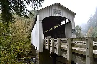 Wildcat Creek Bridge is a covered bridge built in 1925 at Austa, near Walton, in the U.S. state of Oregon. It uses Howe truss engineering and was listed on the National Register of Historic Places in 1979. The 75-foot (23 m) bridge carries Austa Road over Wildcat Creek near its confluence with the Siuslaw River.[2][3]