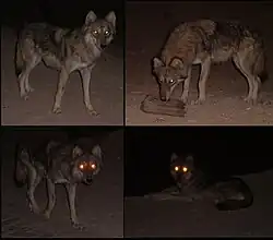 The Canidae family is represented in the Levant by five species: the gray wolf, golden jackal, red fox, Rüppell's fox, and Afghan fox. Gray wolves are the largest species of canidae, with two recognized breeds in the Levant: the Iranian breed and the Arabian breed. The Iranian breed is distributed in the northern part of the region, including northern Palestine and Jordan, through Lebanon and Syria. In contrast, the Arabian breed is found in the deserts of Palestine and Jordan, and is the smallest of the remaining gray wolf breeds. Iranian wolves are legally protected in Israel and are estimated to number around 150 in their natural habitat.[49] In the remainder of the Levant, there are no official statistics on their numbers. Furthermore, they are still hunted and persecuted by livestock farmers who perceive them as a threat to their livelihoods.[50] Levantine wolves rely on the remains of carcasses and carcasses discarded by humans as a source of food. Some of the most common prey of these wolves are rock hyrax, Afar gazelles, mountain gazelles, and Nubian ibex.[51] The most prevalent and well-known species of Levantine fox is the red fox. This species is particularly disliked by poultry farmers due to its predatory behavior, which often results in the loss of chickens, pigeons, and other domesticated birds. Two distinct breeds of red foxes are found in the Levant: The Arabian breed is native to the desert, while the Palestinian breed is indigenous to forests, plains, and mountains. The two breeds are readily distinguishable. The former is characterized by a slender physique, pale coloration, and prominent ears. In contrast, the latter is more robust and fuller in appearance.[52] The other two species of fox native to the Levant are the Rüppell's fox and the Afghan fox. The first species, also known as the sand fox, is primarily a desert animal, with a range extending from Morocco in the west to the foothills of Afghanistan in the east. It can be distinguished from the red fox by its smaller size and sandy color.[53] The Afghan fox, also known as the Blandford's fox, steppe fox, and other names, is a common species in the southern Levant, from southern Israel to the West Bank, and in Jordan. It is similar to other desert foxes, but is more likely to consume fruit than the majority of them.[54] In the Levant, there is a single species of jackal, the golden jackal, which is also represented by a single breed in this region, the Syrian breed. This breed is distributed throughout the Levant, including deserts, forests, mountains, and plains. The Levantine jackal (Canis aureus) is a medium-sized canid with a weight between 5 and 12 kilograms and a length of 60 to 90 centimeters.[55] Its fur exhibits a variety of color patterns of white, black, and red.[56] The animals are locally referred to as wawi due to their distinctive howling sound, which is well-known to villagers. Experts have noted that it is challenging to ascertain the current conservation status of Levantine jackals, given that they have been breeding with stray domesticated dogs for hundreds of years and producing numerous hybrids.[57] There are five other cat species in the Levant: the sand cat, wild cat, jungle cat, caracal, and leopard. The sand cat is the smallest of the Levantine cats, it measures between 1.4 and 3.4 kilograms and is between 39 and 57 centimeters long, not including the tail.[58] These cats can be distinguished from others by their flatter head, sandy color, and exclusively desert habitat. Environmental authorities in Israel are working to breed and release as many of these cats as possible in the Arabah Valley to increase their numbers, which have declined significantly. The wildcat is the most common feline species in the Levant, the ancestor of the domesticated cat, and still lives mainly in the Negev and the western mountain range of Lebanon, in Jordan and several parts of Syria. The most common breed in the country is the Libyan breed, which is believed to be the direct ancestor of the domesticated cat.[59] These cats are readily mistaken for their domesticated cousins, though they are larger but more compact. Another Levantine feline is the bush feline, also known as the swamp feline, of which there are two breeds in the Levant, inhabiting northwestern Jordan, Syria along the Tigris and Euphrates rivers, western Lebanon, northern Israel, and the West Bank.[60] Despite their widespread distribution, these felines are considered rare and endangered in the Levant. Their numbers have declined sharply and are still declining due to the expansion of agricultural land and the draining of the marshes surrounding some large rivers, such as the Yarmuk, Jordan, and Litani. Additionally, farmers poison and shoot them when they are seen, due to their habit of feeding on poultry.[61] The third largest surviving feline in the Levant is the caracal, or desert lynx. This species is distributed throughout the entire country and across all of its natural habitats, despite its reputation as a desert animal.[62] Despite its reputation as a desert animal, The only recognized breed of this species is found in the Levant, with the most significant populations concentrated in the Negev and the Dead Sea depression. The largest surviving felines of the Levantine region are tigers, which are classified into two breeds. According to various scholars, the two breeds are the Arabian and the Persian or Anatolian. The Arabian tiger is still present in the Hebron and Negev deserts in small numbers, with an estimated population of around 20 in the 1970s. They prey on ibex, mountain gazelles, hyrax, and domesticated goats.[63] In the 1970s, an estimated 20 tigers were present in the region,[64] preying on ibex, mountain gazelles, wolverines, and domesticated goats. With regard to the second tiger population in the Levant, there is a divergence of opinion among scientists as to whether it should be regarded as a distinct breed, the An