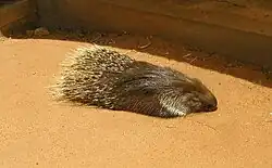 Two species of squirrels are native to the Levant: The two types of squirrels that inhabit the Levant are the Caucasian or Persian squirrel and the Anatolian ground squirrel. The Caucasian squirrel is a small arboreal rodent with a reddish underside and grayish upper surface. It is a species that inhabits temperate broad-leaved and mixed forests.[68] The most abundant populations of this species are found in the forests of the Syrian coast, the forests of the western Lebanon mountain range, and northern Palestine. These animals are diurnal and are observed to prefer oak and cedar forests.[69] The Anatolian ground squirrel (Spermophilus taurensis) is a terrestrial species that inhabits the Levantine steppe and semi-desert regions, as well as plains and mountain meadows at altitudes ranging from 800 to 2,900 meters.[70] These squirrels are detested by farmers for their tendency to colonize agricultural lands and kill crops. However, experts consider them an essential species in the Levantine steppe ecosystem, as they serve as a food source for numerous predators, including owls, scavengers, hawks, and red foxes.[71] The largest Levantine rodent is the Indian crested porcupine,[72] which is locally known as the porcupine. This species is distributed throughout the Levantine region, though it is rarely visible due to its nocturnal activity. The evidence of its presence in an area typically consists of a few scattered quills.[73] Porcupines use these spines as a defensive mechanism against predators. They are typically found in rocky areas and river valleys, with burrows often located in rock crevices or caves. Farmers often regard porcupines as a nuisance due to their predilection for certain crops that bear resemblance to the food they consume in the wild, including potatoes, onions, and carrots.[74] One of the most distinctive rodents native to the Levant is the Palestinian mole. This burrow-dwelling creature feeds on plant bulbs and roots, excavating underground pathways with its long teeth. Its activities often result in the formation of large clumps of soil in agricultural fields. These animals are primarily found in Mediterranean hedgerows and are at risk of extinction due to loss of habitat.[75] Two species of dormouse are known to inhabit the Levant. The forest dormouse and the Asian garden dormouse are both arboreal mammals that inhabit temperate forests, hedgerows, and rocky areas.[76] Both species are found in temperate forests, hedgerows, and rocky areas. The country's mouse fauna is notably diverse, encompassing a multitude of species. Among these, the following are particularly noteworthy: house mouse, black rat, brown rat, Euphrates gerbil,[77] Tristram's rat, Egyptian spiny mouse, golden spiny mouse, yellow-necked woodland mouse, broad-toothed woodland mouse, and Levantine sow mouse. The golden hamster, colloquially referred to as the abu jarab, is endemic to northern Syria and southern Turkey. Additionally, the Turkish hamster, the gray hamster, and numerous other species are found in these regions.[78]