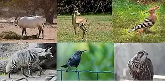 The Arabian oryx disappeared from the southern deserts of the Levant and the Syrian Desert in the 19th century due to intensive hunting by Bedouins and recreational hunters, and by the 1930s the animal had disappeared from Jordan and was listed as globally endangered. The Arabian oryx was reintroduced to Israel in 1978, when a breeding program was established. The animals bred successfully in captivity until they reached 80 individuals in 1996, some of which were released in the Arabah Valley and the Negev. They subsequently reproduced naturally, reaching a population of approximately 100 by 2004.[119] In 2009, the oryxes were repatriated to Jordan, with 20 animals being released in Wadi Rum. These animals were transported from Abu Dhabi in the United Arab Emirates. In Syria, a few herds of these animals reside in the fenced Tallila Reserve in a semi-wild state.[120] The akhdar, or Asian wild donkey, inhabited the Syrian and Palestinian deserts in vast numbers for millennia. By 1927, the species had been completely extirpated from the region as a consequence of hunting, and two distinct breeds were present in the Levant, the Syrian breed, which is now extinct, and the Persian breed, which was reintroduced to Israel during the 1960s and 1980s. They were released in the Negev Desert in southern Israel, where more than 150 now live, and another herd was released in the Arabah Valley,[121] and the animals have been reintroduced to Syria and Jordan. The Israeli environmental authorities have introduced the Maha Abu Adas and the African wild donkey to the Hai Bar Yotvata Desert Reserve, which specializes in breeding threatened desert wildlife, especially those mentioned in the Torah. These two species are likely to be among the animals mentioned in the Torah, which are said to have inhabited the land of Palestine. However, neither of these two species have been released into the wild until it is definitively confirmed that they are indeed among the mammals that inhabited the area in the past.[122] Other mammals that became extinct in the Levant and have yet to be reintroduced include the hippopotamus, Asiatic cheetah,[123]red deer,[124] and Barbary sheep.