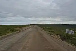 The aerodrome's gravel runway is actually a small section of the Dempster Highway, with a pull-off ramp area provided to keep aircraft parked clear of the road surface.