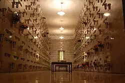 The original crematorium building is the Rose Chamber, grouped with several rooms below it, also named after flowers: the Lily, Daisy, Tulip, and Carnation Rooms.[4] Various wings throughout the mausoleum take their names from religious figures as well as U.S. presidents.[4]
