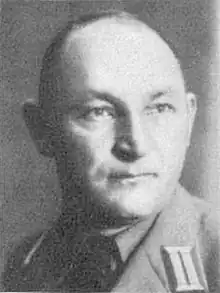 On 1 October 1938, Börger was promoted to Ministerial Director in the Labor Ministry, overseeing Main Department I (General Administration), and also was appointed as a special trustee (Sonderstreuhänder) for mining.[5] A member of the SS since 1935 (SS number 247,066), he was assigned to the SS Race and Settlement Main Office, the organization responsible for safeguarding the "racial purity" of the SS. Börger attained his final promotion to SS-Brigadeführer on 30 January 1939.[6]