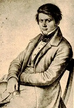 Wilhelm Waiblinger (German: [ˈvilhɛlm ˈvaɪblɪŋɐ] ⓘ; 21 November 1804 – 17 or 30 January 1830) was a German romantic poet, mostly remembered today in connection with Friedrich Hölderlin. After he had attended Gymnasium Illustre in Stuttgart,[1] he was a student at the seminary of Tübingen in the 1820s, when Hölderlin, already mentally ill, lived there as a recluse in a carpenter's house. Waiblinger, who used to visit the older poet and take him out for walks, left an account of Hölderlin's life then, Hölderlins Leben, Dichtung und Wahnsinn ("Hölderlin's life, poetry and madness"). In the late 1820s, Waiblinger left Tübingen for Italy, dying at the age of 25 in Rome, where he is buried in the Protestant Cemetery.[2]