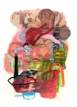 Gill's paintings, which he creates in small and sometimes very large scale sizes in his private studio, have been described as "simplistic and layered...invitingly crafted and coloured."[13] "Cemetery Park (2008) is as frisky and playful as Gum Machine (2008) (both acrylic and collage on panel), with the tombstones and crosses of the former as animated and full of bouncy colours as the latter's gumballs. Others pinwheel and spring with clouds of vanilla and spokes of red and orange. Their energy vaults from the walls."[13] His newer painted works, such as Smokestack/Flower (2010) and Black Water (2012) continue this theme. Gill's paintings have been exhibited locally, as well as nationally and internationally.[14]