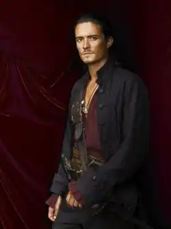 Described as the "traditional Errol Flynn type" of character compared to Johnny Depp's Keith Richards-inspired portrayal of Jack Sparrow,[9] Will Turner was originally written as a prison guard who freed Sparrow to rescue Elizabeth Swann in early drafts of The Curse of the Black Pearl. Actor Orlando Bloom, who took the role of Turner after playing Legolas in Peter Jackson's The Lord of the Rings film trilogy, stated that he read the script after Geoffrey Rush, whom he was working with on Ned Kelly, suggested it to him.[10] Tobey Maguire, Jude Law, Ewan McGregor, Ben Peyton, Christian Bale and Heath Ledger were also considered for the role,[11] with Tom Hiddleston also auditioning for the role.[12]