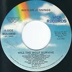 "Will the Wolf Survive?" was also recorded by American country music artist Waylon Jennings. It was released in May 1986 as the second single and title track from the album Will the Wolf Survive?. The song reached number 5 on the Billboard Hot Country Singles & Tracks chart.[6]
