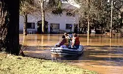 The Willamette Valley flood of 1996 was part of a larger series of floods in the Pacific Northwest of the United States which took place between late January and mid-February 1996. It was Oregon's largest flood event in terms of fatalities and monetary damage during the 1990s. The floods spread beyond Oregon's Willamette Valley, extending west to the Oregon Coast and east toward the Cascade Mountains. Significant flood damage also impacted the American states of Washington, Idaho (particularly the north of the state) and California. The floods were directly responsible for eight deaths in Oregon, as well as over US$500 million in property damage throughout the Pacific Northwest. Three thousand residents were displaced from their homes.[1]