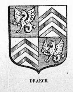 He was born to an old and important family of Antwerp, he was the son of Waltherus Draeck and Geertuid van de Werve.[2] His sister was married to Cornelis van der Noot. He was related to all the most important noble houses of Antwerp, his descendants include relations to the houses of van Straelen, Schetz, d'Ursel, and van de Werve.