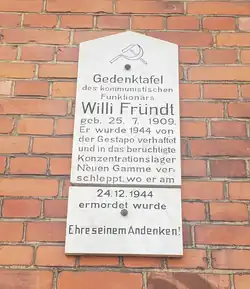 Willi Fründt (25 July 1909 – 24 December 1944) was a German communist functionary from Grabow who was arrested by the Nazis as a result of Aktion Gitter after the failed 20 July plot.