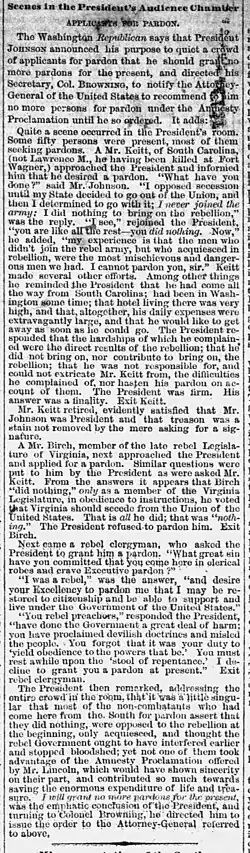 - ^ "President Johnson's Private Secretary". Buffalo Weekly Express. May 2, 1865. p. 1. Retrieved 2023-06-27.