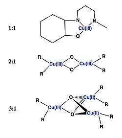 - ^ a b c d Elwell, Courtney E.; Gagnon, Nicole L.; Neisen, Benjamin D.; Dhar, Debanjan; Spaeth, Andrew D.; Yee, Gereon M.; Tolman, William B. (2017-02-08). "Copper–Oxygen Complexes Revisited: Structures, Spectroscopy, and Reactivity". Chemical Reviews. 117 (3): 2059–2107. doi:10.1021/acs.chemrev.6b00636. ISSN 0009-2665. PMC 5963733. PMID 28103018.