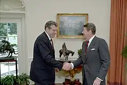 In 1981 President Reagan appointed Bennett to chair the National Endowment for the Humanities (NEH), where he served until Reagan appointed him Secretary of Education in 1985. Reagan initially nominated Mel Bradford to the position, but due to Bradford's pro-Confederate views, Bennett was appointed. This event was later marked as the watershed in the divergence between paleoconservatives, who backed Bradford, and neoconservatives, led by Irving Kristol, who supported Bennett.