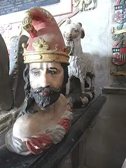 Effigy of William Bourchier, 3rd Earl of Bath (died 1623), wearing an earl's coronet and robes with ermine collar with sapphire clasp, St Peter's Church, Tawstock, Devon | |