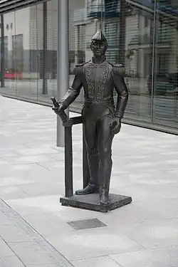 Statues and memorials of Brown's battles are located in both Buenos Aires and Foxford, his birthplace in Ireland.[23] A museum to his honour was opened in Foxford, located on Lower Main Street.[24] In April–June 2006 the Irish Naval Service patrol boat LÉ Eithne travelled to Buenos Aires in the first-ever deployment of an Irish warship in the southern hemisphere, in order to participate in commemorations of the impending sesquicentenary of Brown's death, and to bring back a statue of Brown to be displayed in Dublin.[25] During the trip, LÉ Eithne made a stop in the city of Mar del Plata, where they visited Plazoleta Almirante Brown (Admiral Brown's Square) and pay tribute to the Irish naval hero along with their colleagues of the Argentine Navy.[26]