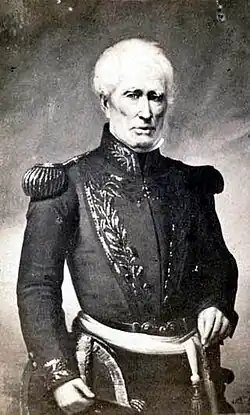 William Brown (also known in Spanish as Guillermo Brown or Almirante Brown) (22 June 1777 – 3 March 1857) was an Irish sailor, merchant, and naval commander who served in the Argentine Navy during the wars of the early 19th century.[2] Brown's successes in the Argentine War of Independence, the Cisplatine War, and the Anglo-French blockade of the Río de la Plata earned the respect and appreciation of the Argentine people, and he is regarded as one of Argentina's national heroes. The creator and first admiral of the country's maritime forces, he is commonly known as the "father of the Argentine Navy".[3][4][5][6]