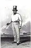 In the late 1840s, Nottinghamshire CCC player William Clarke recognised that a professional touring eleven could enhance the local and fragmented popularity of cricket.[1] In 1846, he founded what would become known as the "All-England Eleven"[2] as an all-professional team that played a few games in the North of England against more-than-eleven local teams.[3] He originally called his side "Eleven of England".[4] The squad arguably comprised the best English professional players of the time,[3] as well as two nominally "amateur" cricketers, Alfred Mynn and Nicholas Felix.[5] The All-England Eleven was inundated with requests for fixtures [1] and received a payment from its opponents[3] (who could in turn hope for a large attendance). During the following years, helped by the development of railways, the team regularly toured Great Britain, doing much to increase the popularity of the game in areas that had previously not seen high class cricket.