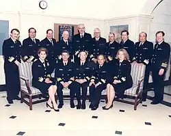![]() William E. Paul (back row, third from left) as a Public Health Service officer in a group photo sometime around the 1980s | |