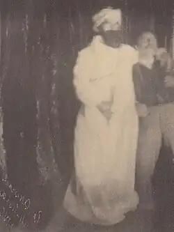 Eglinton was briefly successful as a medium, which was largely because he was endorsed by Charles Richet.[7] However, in 1876, Eglinton was exposed as a fraud when the psychical researcher Thomas Colley seized the "spirit" materialization known as "Abdullah" and cut off a portion of its cloak. It was discovered that the cut piece matched a cloth found in Eglinton's suitcase.[8] Colley also pulled the beard off the materialization and it was revealed to be a fake, the same as another one found in the suitcase of Eglinton.[9] In 1886 the spiritualist John Stephen Farmer wrote a supportive biography of Eglinton.[10]