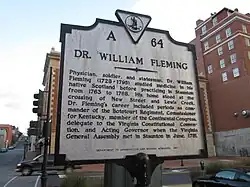 Colonel William Fleming (February 18, 1727 – August 5, 1795) was an American physician, soldier, politician, and planter who served as a local justice of the peace in the mountains of southwestern Virginia and Kentucky, as well as in the Senate of Virginia and briefly acted as the Governor of Virginia during the American Revolutionary War.