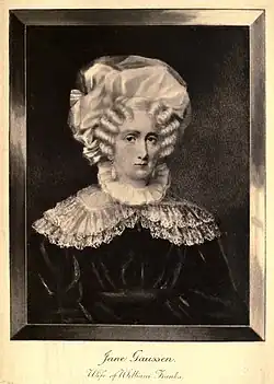 In 1780, Franks married Jane Gaussen[6] in Leyton, Essex.[7] Their children included: