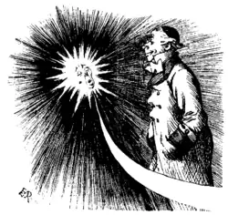 ![]() William Denning celebrated in Punch magazine Vol. 102, 9 April 1892, on the occasion of The Times newspaper commenting on Denning's discovery of a small faint comet on Friday 18 March 1892 at Bishopston, Bristol | |