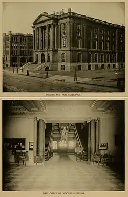 Preston ran his practice for many years from a commercial and office building located at 186 Devonshire Street.[13] He designed Massachusetts Institute of Technology's Rogers Building in 1864, located on Boylston Street near Boston's Copley Square, which housed the school's architecture department. Floor plans for the building show a large, centrally located space devoted to an architectural library and museum. Drawings from the Study Collection were hung on the studio walls and numerous casts and other artifacts also lined the walls and picture rails.[14]