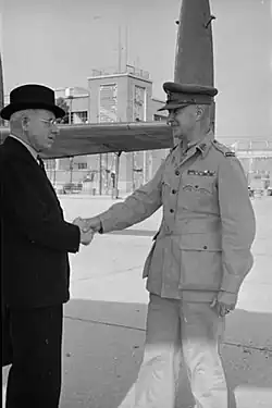 Stevens was based in Egypt from 1940 until 1944, when HQ 2NZEF was shifted to Italy.[2] He was made a Commander of the Order of the British Empire and promoted to brigadier in 1941.[1] This was followed three years later by an appointment as a Companion of the Order of the Bath.[2][9] In November 1945, he reached the pinnacle of his military career when he was appointed general officer commanding, 2NZEF, replacing Bernard Freyberg. Promoted to major-general, he oversaw the demobilisation of the 2NZEF until mid-1946.[1]