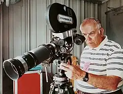 Wilson's love for sports led him to become one of the most accomplished cinematographers in that category.[1] He worked for Louis W. Kellman's Newsreel Laboratory in Philadelphia and Tel-Ra Productions, two prominent producers of sports programming during the 1950s and 1960s.[5] He was the principle cinematographer for numerous popular television sports programs including Tele-Sports Digest[3] and Gillette Cavalcade of Sports. Tele-Sports Digest was an early forerunner of ABC's Wide World of Sports and other television sports highlight programs.[1] Wilson traveled more than 2,000,000 miles (3,200,000 km), crisscrossing the nation filming major sporting events including 30 baseball World Series, 20 baseball All-Star games, 30 Kentucky Derby horse races, 20 Masters golf tournaments, 15 U.S. Open golf tournaments, 15 Indianapolis 500 auto races, 6 Stanley Cups and hundreds of college and pro football games including 13 NFL Championships and Super Bowl I and Super Bowl II.[1] He filmed numerous boxing championship matches involving Rocky Marciano, Sonny Liston and Jake LaMotta. His cinematography is immortalized in scores of college football highlight films for major universities including Notre Dame, Ohio State, Penn State, Alabama, Boston College and scores of others. He filmed more than 20 college football bowl games.[1] For filming football he typically used a 16mm Arriflex M (Arri) fitted with an 85-250mm Nikkor zoom lens. He was a regular cameraman for Winik & Winik Productions in New York City, Major League Baseball Productions, NCAA Football and the New York Racing Association. He filmed nearly every Army-Navy football game between 1955 and 1995. His cinematography for a Breeders Cup film was nominated for an Emmy.[3] As a cameraman, Wilson was a fixture at World Series games and was so well known around the baseball diamond that former President Richard Nixon once asked him to make introductions to one of his favorite Oakland Athletics players.